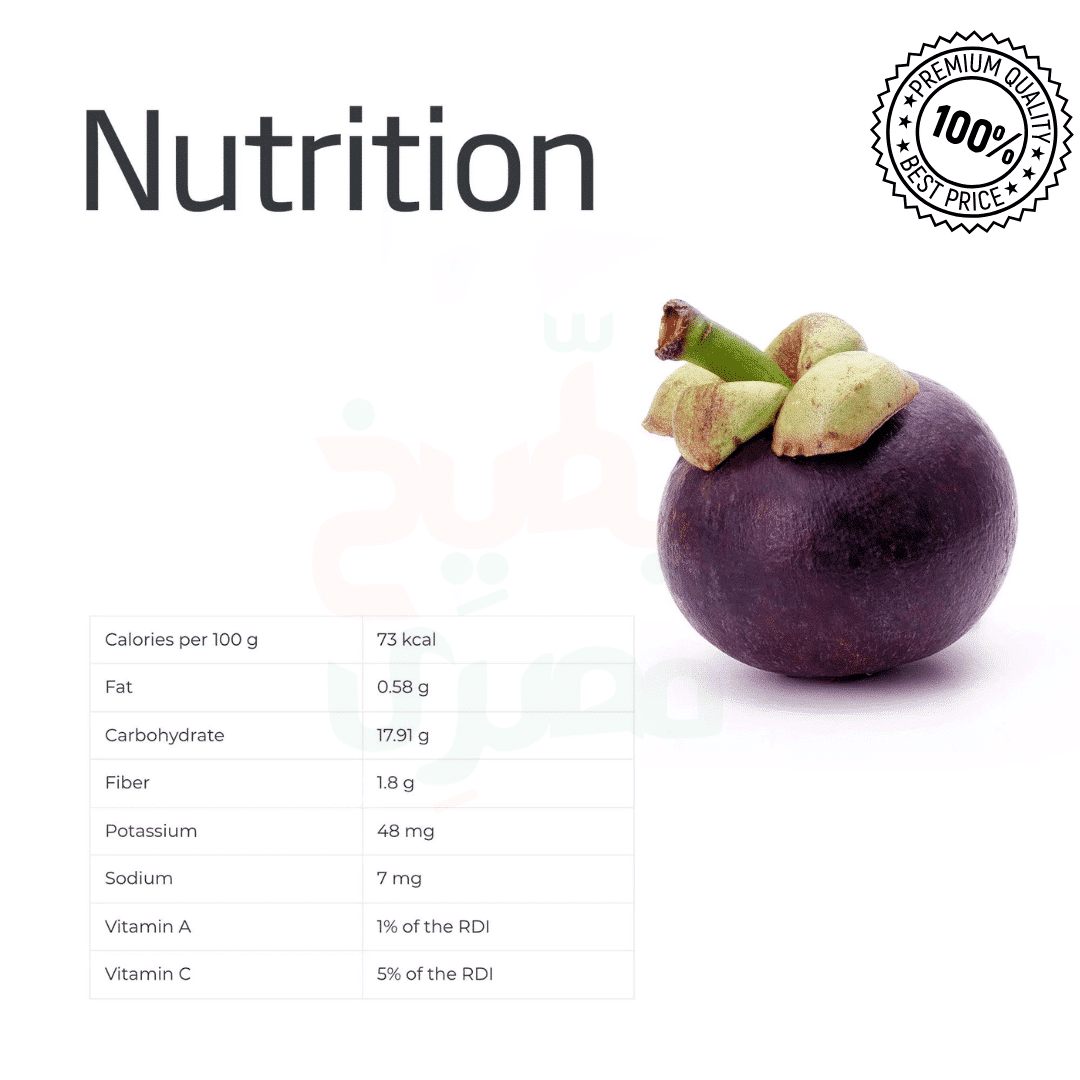 و تتميز فاكهة المانجوستين باللون البنفسجي الغامق وطعمها الاستثنائي واللذيذ وأيضاً تعرف بأنها من أشهر الفواكه الاستوائية