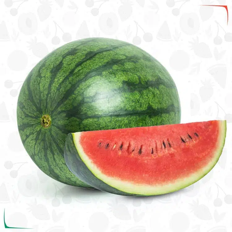 بطيخ مصري جيزة فاخر نمرة 1 بمواصفات أوربية تصدير ومن أجود أنواع البطيخ في مصر وتم زراعته في أفضل المزراع ذات التربة الخصبة والنقية وشكل وحجم البطيخ مستدير ومتساوي وأيضاً بيضاوي والقشرة باللون الأخضر الفاتح أو الأخضر الغامق ولون اللحم الداخلي أحمر اللون وتم حفظه وتخزينه في ظروف ملائمة للحفاظ عليه من الحرارة والشمس